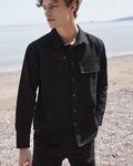 Heavyweight overshirt, Heavy garment wash, Back yoke, Twin-needle topstitching, Plastic horn effect buttons, Mitred patch pockets with flap, Mitred cuff and placket with button fastening, Curved hem, Forward shoulder seam, Tag Free for easy rebranding
