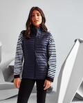 Full zip through lightweight style with stand up collar and zip guard, Horizontal lines of stitching padded out with artificial down, Internal pockets and external zipped side pockets, Drawstring self fabric bag for easy carrying, 30 degrees domestic wash, Shower resistant, Lightweight, Rebrandable
