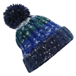 Tearaway label for ease of rebranding, Cuffed design for optimal decoration, Heavyweight multi yarn cable knit design, Luxurious shearling thermal band for extra warmth, Luxury pom pom, Bold four colour stripe design