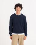 70% recycled pre consumer cotton, Crew neck, Ribbed cuffs and collar, Seed stitch, Size label only, Set in sleeves, Standard fit
