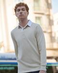 Slim fit rugby shirt, Twin needle hems, Supersoft peached finish, Zip zag detailing on under collar, Contrast striped taping in back neck and side vents, Plastic buttons with contrast stitching, Traditional rugby collar with cotton webbing, Wash at 40 degrees