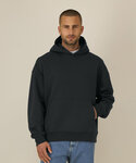 Iconic mid-light unisex hoodie sweatshirt. Relaxed fit. Set-in sleeve. Self-fabric lined hood. 1x1 rib at sleeve cuff and hem. Kangaroo pocket. Inside back neck herringbone tape. Half moon at back neck.